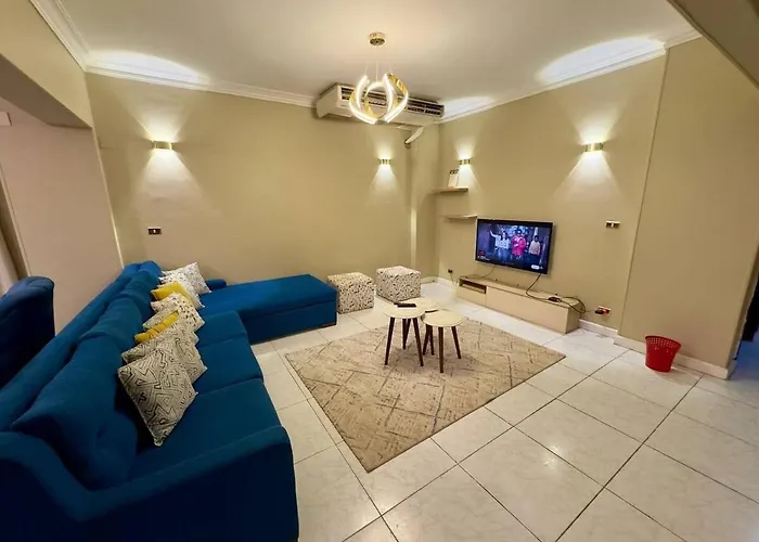 An equipped kitchenette is featured at the accommodation. El Giza train station is within 40 minutes' drive of this apartment and Cairo International airport is a 15-minute drive away. The apartment opens onto a terrace.